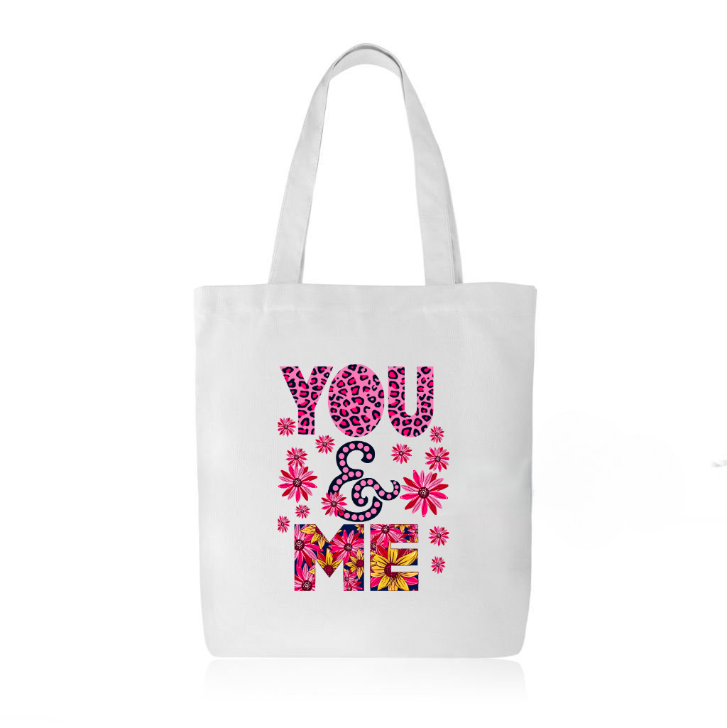 Pause your scrolling, babe! Imagine strolling through a chai shop or hopping on the metro with the YOU & ME tote slung over your shoulder. It’s not just any bag—it’s a slice of romance wrapped in leopard print and floral whispers. Your new partner-in-crime will be nodding approval as you effortlessly juggle college books, a sneaky shopping spree, or even just a day out in the city. Ever hear of the Golden Era? This bag feels like a retro love letter with a playful twist, and it’s here to carry more than just your essentials; it’s carrying you into your own romantic adventure. This one’s for the bold, for the beautiful, for you—or maybe that special someone who deserves the heaviest love wrapped in the lightest cotton.